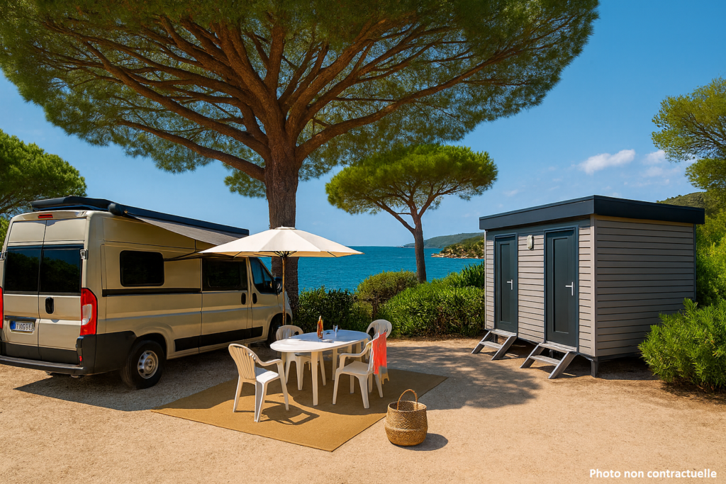 Plads til campingvogn på en campingplads ved havet i Sydfrankrig