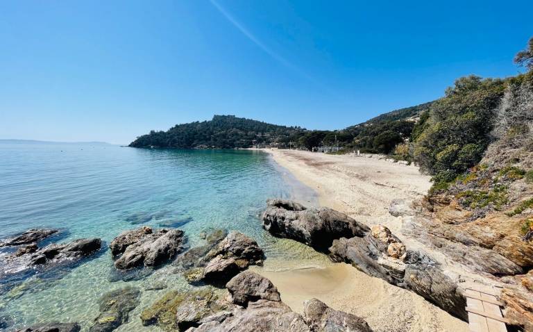 In der Umgebung Das Paradies auf Erden. Strand von Pramousquier: ein naturbelassenes Juwel an der Côte d’Azur Zwischen Le Lavandou und Cavalaire-sur-Mer gelegen, am Fuße des Cap Nègre, begeistert der