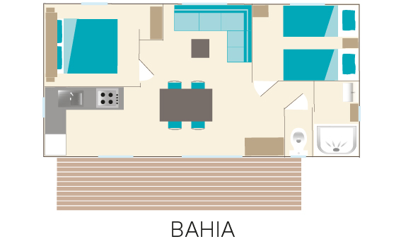 BAHIA mobile home – exterior BAHIA mobile home – living area BAHIA mobile home – main bedroom BAHIA mobile home – children’s bedroom