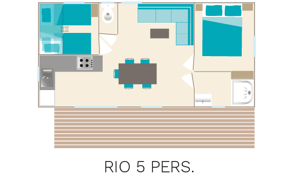 RIO mobile home – terrace RIO mobile home – living area RIO mobile home – double bedroom RIO mobile home – children’s bedroom