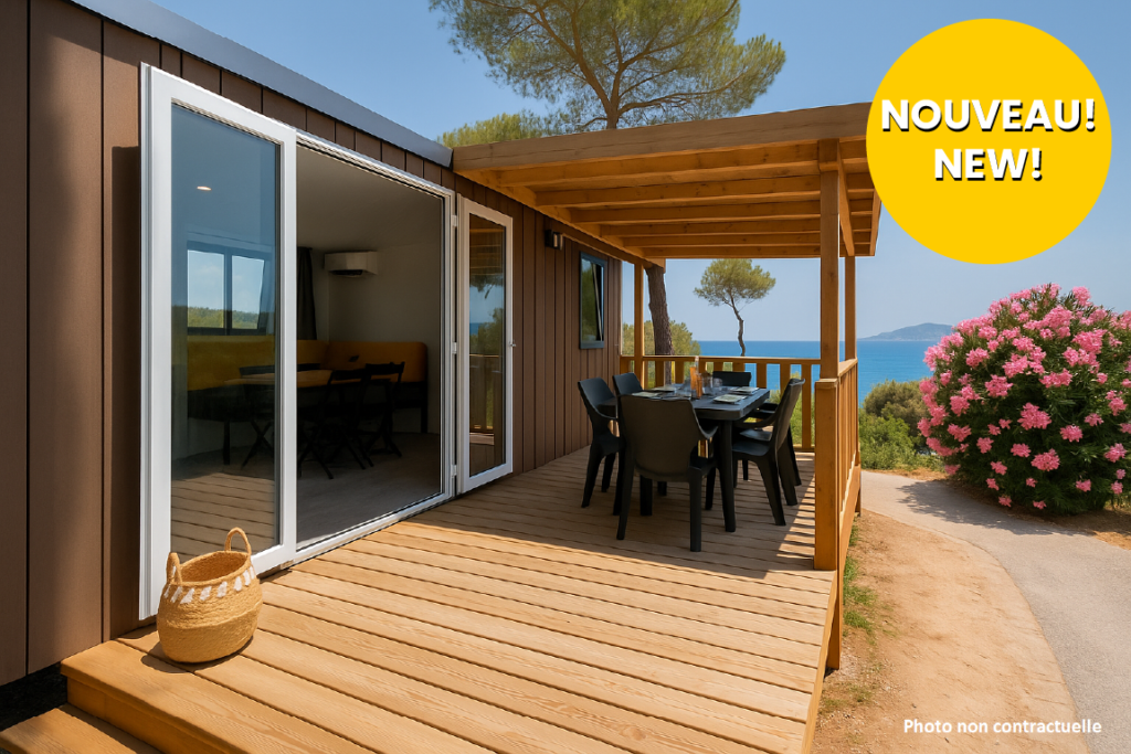 Nos mobil homes sont des joyaux de confort et de modernité. Pouvant accueillir entre 2 et 6 personnes en fonction du modèle, ils disposent tous de la climatisation, de chambres spacieuses et confortables, d’une salle d’eau accueillante avec toilettes séparés, d’une pièce de vie au design élégant et moderne, et d’une cuisine avec tout l’équipement nécessaire pour des vacances conviviales et chaleureuses en famille ou entre amis. Tous nos mobil homes bénéficient d’une grande terrasse en bois agrémentée d’une végétation soignée, garantissant l’intimité de tous. Que le mobil home soit au cœur de la pinède avec vue sur les collines, ou côté mer avec une vue mer partielle, toutes nos locations de vacances sont situées à quelques minutes à pied de la mer, permettant de laisser le véhicule stationné à côté de votre location de vacances et de partir en toute insouciance à la plage, cheveux au vent.